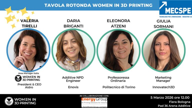 Il prossimo 5 marzo, nell’ambito di MECSPE, si terrà una tavola rotonda organizzatada Women in 3D Printing, dedicata alle sfide