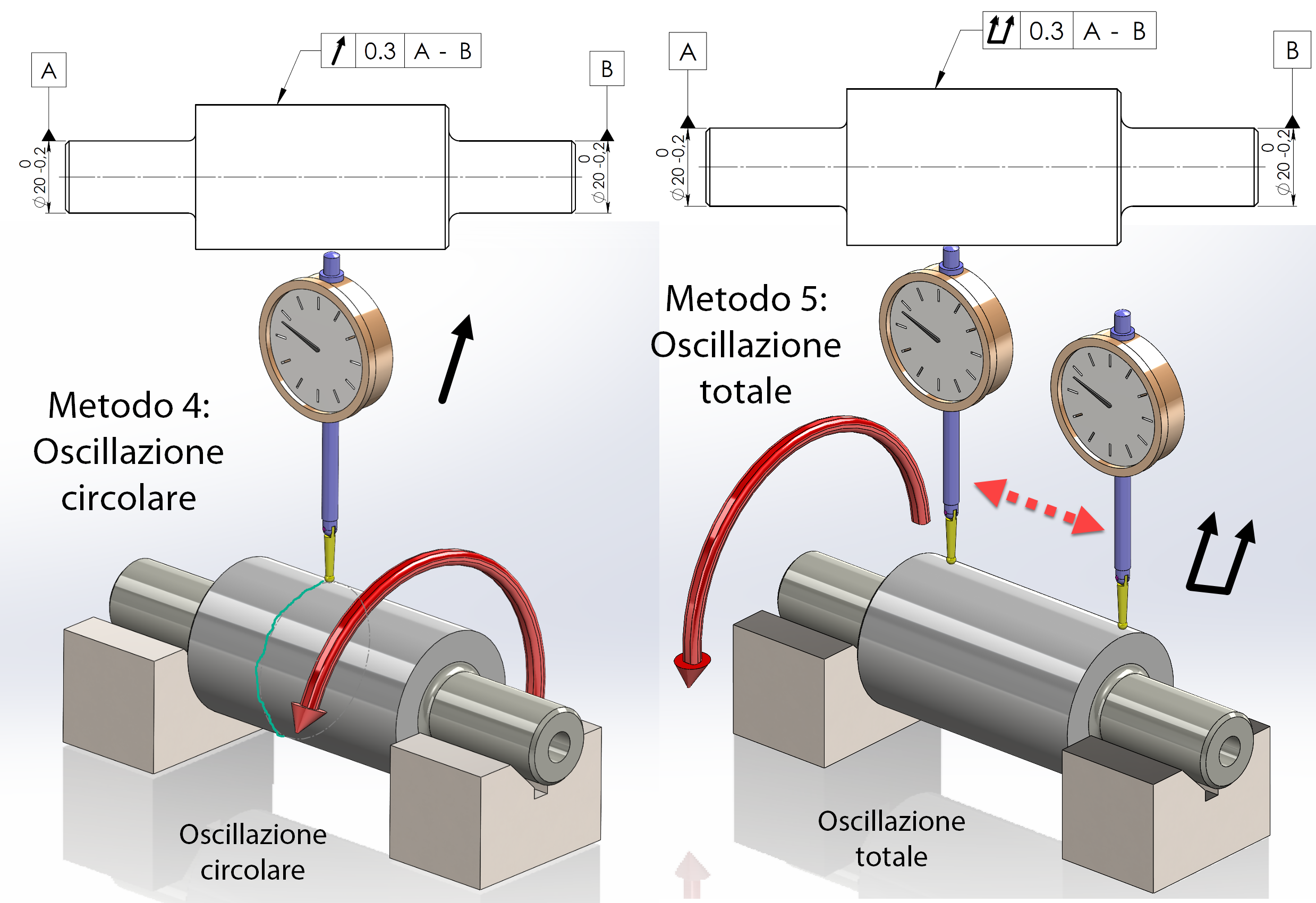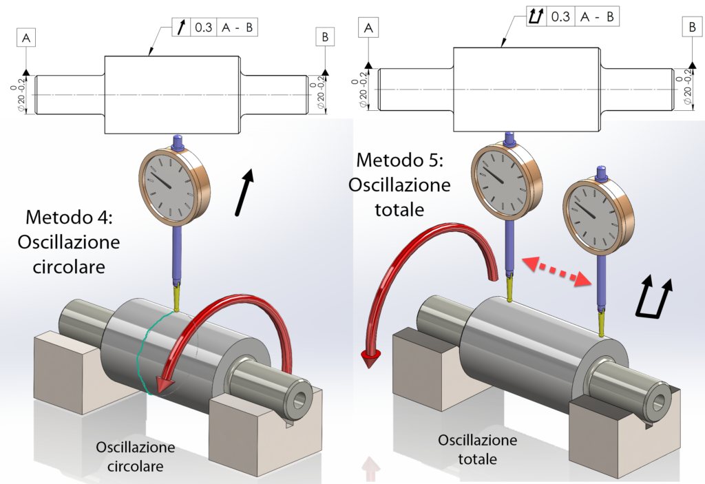 Qualora sia necessario controllare l’effetto combinato degli errori di forma (circolarità, cilindricità e rettilineità) e di coassialità, è possibile impiegare le tolleranze di oscillazione circolare o totale, come illustrato in figura 5.