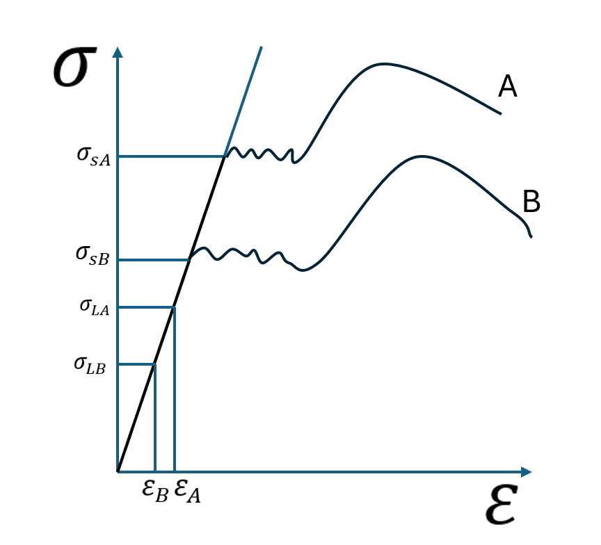 Confrontiamo due acciai: l’acciaio A abbia un limite di snervamento una volta e mezzo quello dell’acciaio B.
