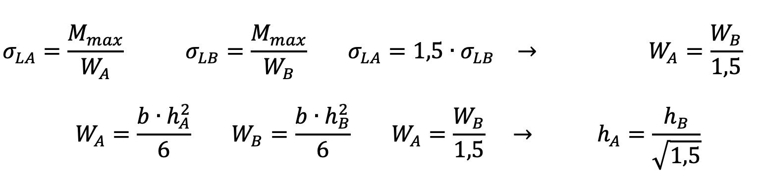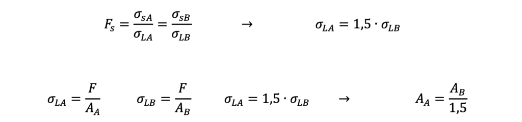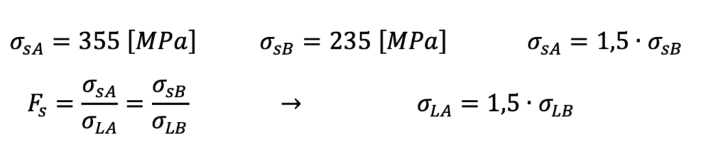 Ragionando a parità di fattore di sicurezza, la tensione di lavoro massima dell’acciaio A risulterà una volta e mezza superiore a quella dell’acciaio B, consentendo di adottare per la trave una sezione 1,5 volte inferiore a quella necessaria nel caso dell’acciaio B.