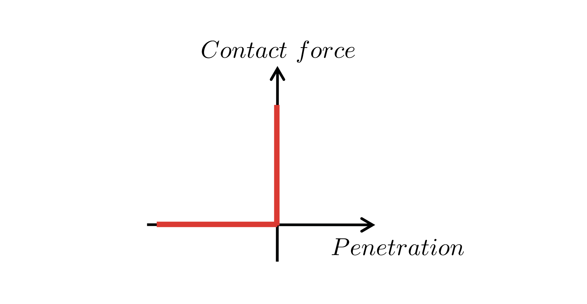 La seconda causa è legata ad una risposta discontinua della forza: le forze di contatto, infatti, mostrano cambiamenti bruschi (ad esempio, da zero ad un valore finito quando le superfici si toccano). Questa discontinuità assomiglia ai vincoli di incomprimibilità, che richiedono metodi specializzati (moltiplicatori di Lagrange o metodi di penalità)