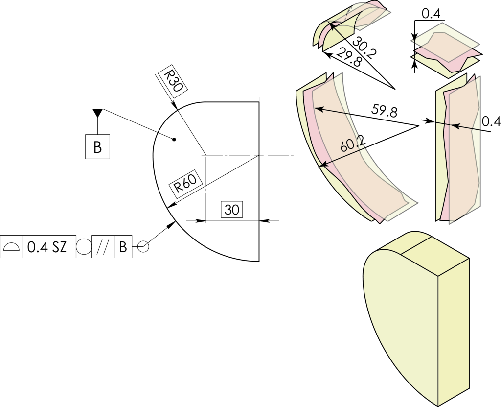 La tolleranza geometrica del profilo è uno dei più versatili e potenti strumenti per il dimensionamento funzionale oggi disponibile, in quanto non è solo una tolleranza di forma, ma controlla contemporaneamente dimensione, orientamento, posizione e naturalmente forma di un elemento.