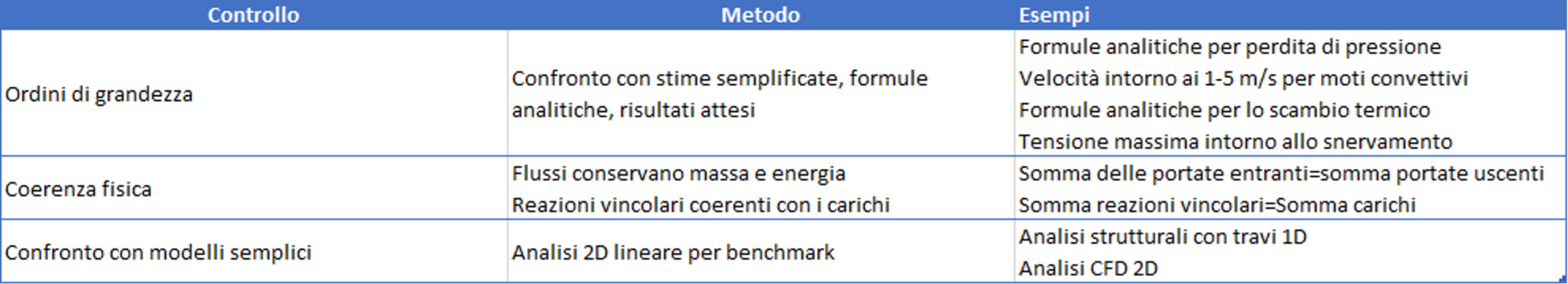Naturalmente, la prima strategia da adottare nei processi di simulazione consiste nell’assumere un approccio fortemente critico nei confronti dei risultati: considerarli inizialmente come potenzialmente errati e riconoscerne la correttezza solo dopo aver raccolto prove indipendenti e coerenti a sostegno della loro validità. Questo atteggiamento permette di mantenere costantemente il controllo sul modello e di evitare che la fiducia nel software sostituisca il giudizio ingegneristico necessario per interpretare correttamente i risultati.