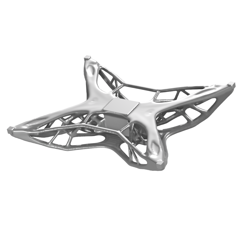 Quando arriva il momento di costruire l’oggetto progettato, la sua complessità è un fattore chiave nella scelta del processo di produzione da utilizzare. I risultati unici della progettazione generativa e dell’ottimizzazione topologica di solito non sono adatti alla produzione tradizionale e alla produzione su larga scala. Per questo motivo, i progetti creati con questi metodi, o con una tecnica ibrida, sono spesso associati all’additive manufacturing. Ad esempio, il nostro modello di drone è particolarmente adatto all’additive manufacturing.