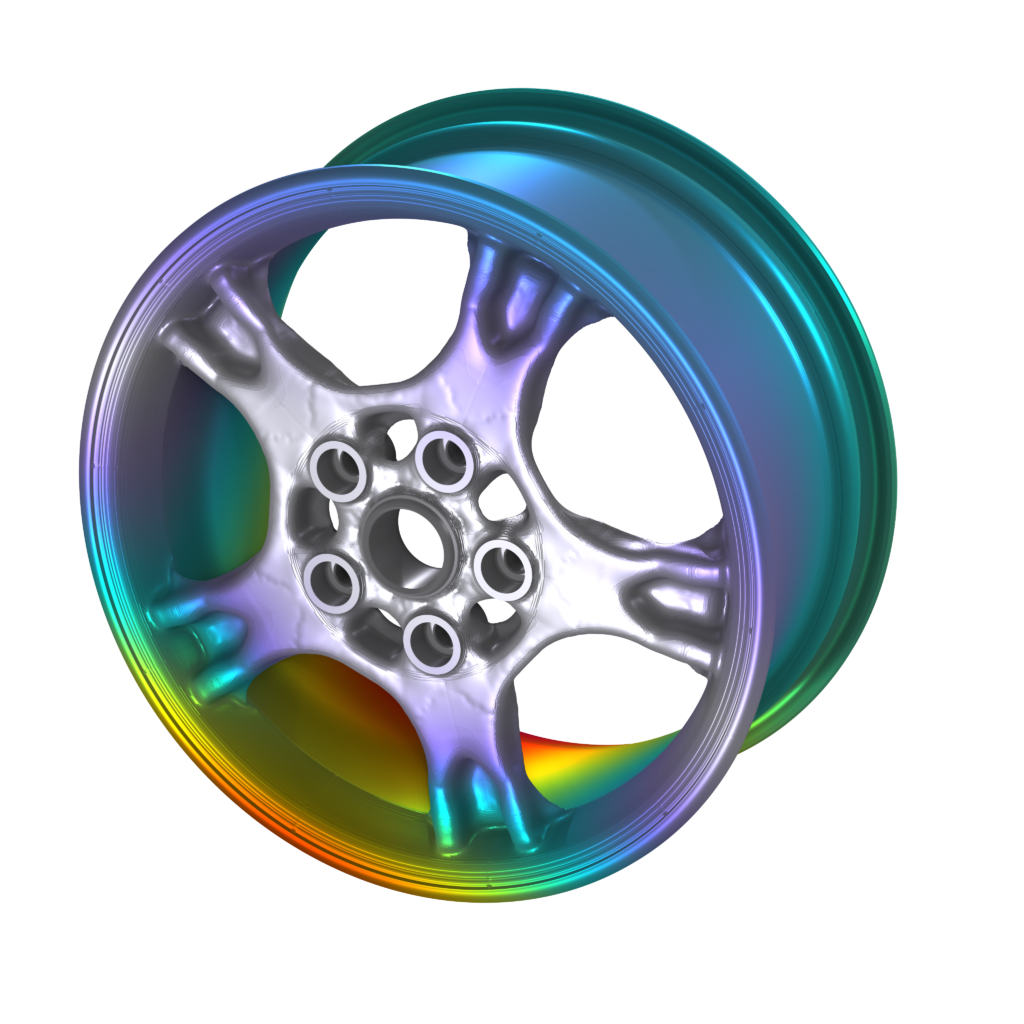 Se fosse consentita una completa libertà di progettazione, il progetto ottimale avrebbe generalmente le stesse proprietà di simmetria dei casi di carico. Tuttavia, per ottenere la simmetria possono essere necessari molti casi di carico e un numero elevato di casi di carico può comportare un costo computazionale elevato. In questo esempio, ci si aspetta una simmetria di progettazione perché la nostra ruota deve essere in grado di girare, ma ci troviamo di fronte alla sfida di non avere casi di carico simmetrici. Per questo motivo, l’intera ruota deve essere modellata in ogni iterazione di ottimizzazione per vedere come i casi di carico influenzano il progetto.