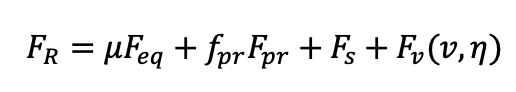 Il primo termine rappresenta l’attrito legato al carico applicato Feq, con un coefficiente che di norma vale tra 0.002 e 0.003. Il secondo termine è la resistenza fissa introdotta dalla presenza del precarico Fpr. Il termine  indica l’attrito costante causato dallo strisciamento delle guarnizioni e dei raschiatori, un valore che incide parecchio nei pattini di piccola taglia. L’ultimo termine, Fv(v,n), rappresenta semplicemente la resistenza opposta dal lubrificante, che varia in base alla velocità del carrello e alla viscosità del fluido.