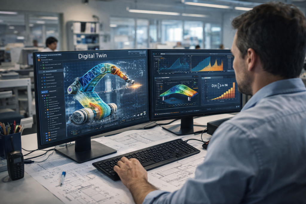 Questo confronto non ha una funzione meramente diagnostica, ma diventa parte integrante del processo progettuale. Il modello numerico viene aggiornato, calibrato e raffinato sulla base dei dati acquisiti, riducendo progressivamente lo scarto tra simulazione e componente reale. In tal senso, il Digital Twin può essere visto come un “modello vivo”, capace di adattarsi alle condizioni operative e di restituire una rappresentazione sempre più fedele del sistema fisico. Per il progettista industriale, questo significa disporre di uno strumento che non solo verifica una soluzione, ma ne accompagna l’evoluzione nel tempo.