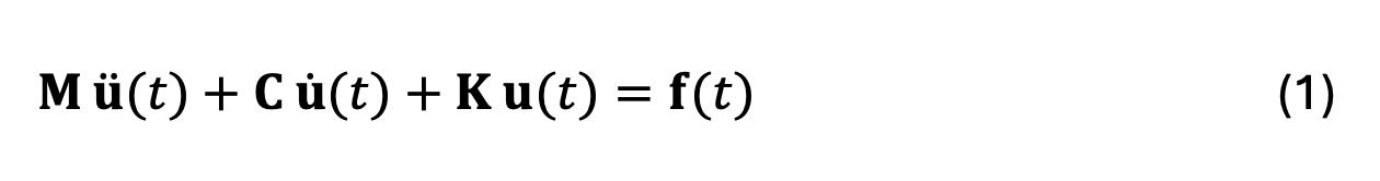 in cui M, C, K sono le matrici di massa, smorzamento e rigidezza, u(t) è il vettore degli spostamenti strutturali, u (t) e ü (t) sono velocità e accelerazioni, f (t) è il vettore dei carichi esterni equivalenti. Questa equazione consente di correlare direttamente le misure dinamiche (accelerazioni, vibrazioni) con il modello numerico, ed è alla base della sincronizzazione tra struttura fisica e gemello digitale.