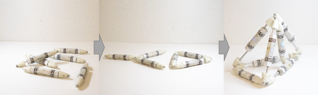 I moduli robotici possono crescere consumando e riutilizzando parti provenienti dall’ambiente circostante e da altri robot. Questa capacità, essenziale per le forme di vita biologiche, è cruciale per lo sviluppo di un’ecologia robotica autosufficiente. Questo articolo illustra in dettaglio la sequenza di sviluppo sopra descritta: dai singoli moduli a un robot tetraedrico a cricchetto completamente assemblato.