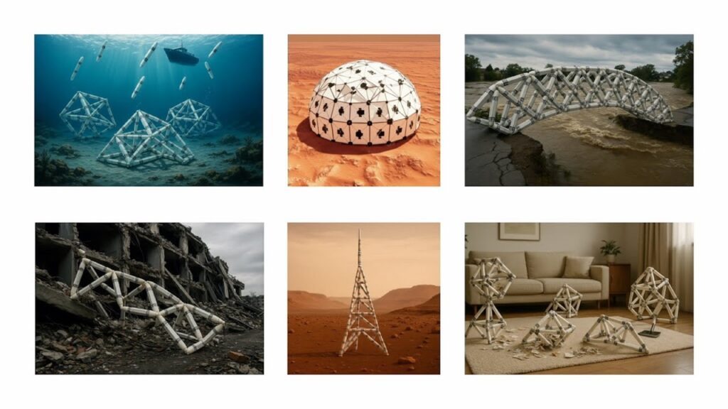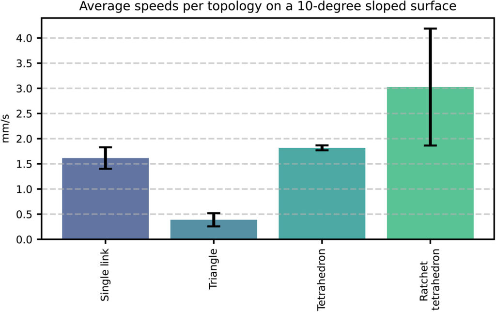 Il fulcro sperimentale di questa ricerca è il Truss Link, un modulo robotico ispirato al giocattolo Geomag. Si tratta di un elemento dotato di connettori magnetici, capace di autoassemblarsi in strutture bidimensionali e tridimensionali. Questi moduli possono essere “consumati” da altri robot per espandere la propria struttura, migliorando le prestazioni. Come riportato nello studio pubblicato su Science Advances, un robot tetraedrico ha migliorato la propria capacità di locomozione dopo l’integrazione di un modulo aggiuntivo.