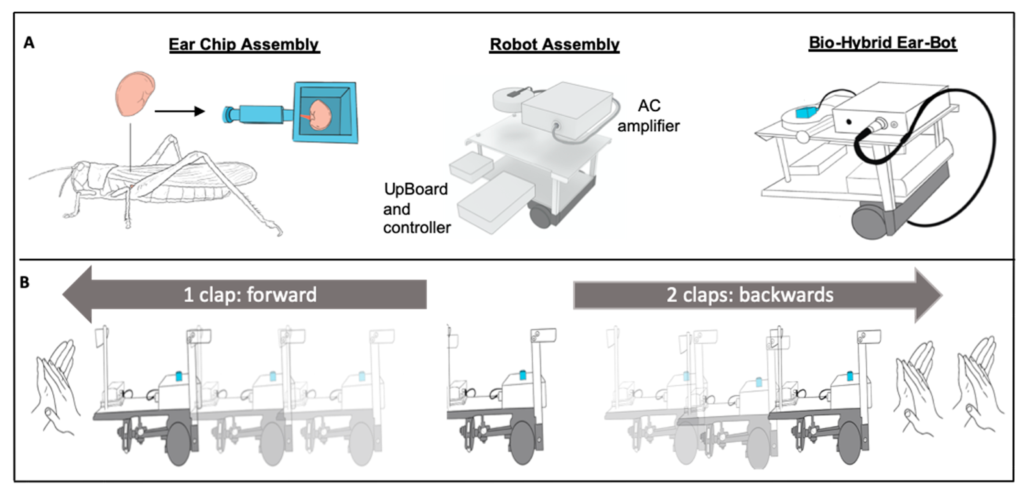 “Abbiamo scelto il senso dell’udito perché può essere facilmente paragonato alle tecnologie esistenti, in contrasto con l’olfatto, dove la sfida è molto maggiore”, spiega il dott. Maoz. “Il nostro compito era sostituire il microfono elettronico del robot con l’apparato uditivo di un insetto morto, utilizzare la capacità dell’orecchio di rilevare i segnali elettrici dall’ambiente — in questo caso le vibrazioni dell’aria — e, tramite un chip speciale, convertire l’input dell’insetto in quello del robot.”