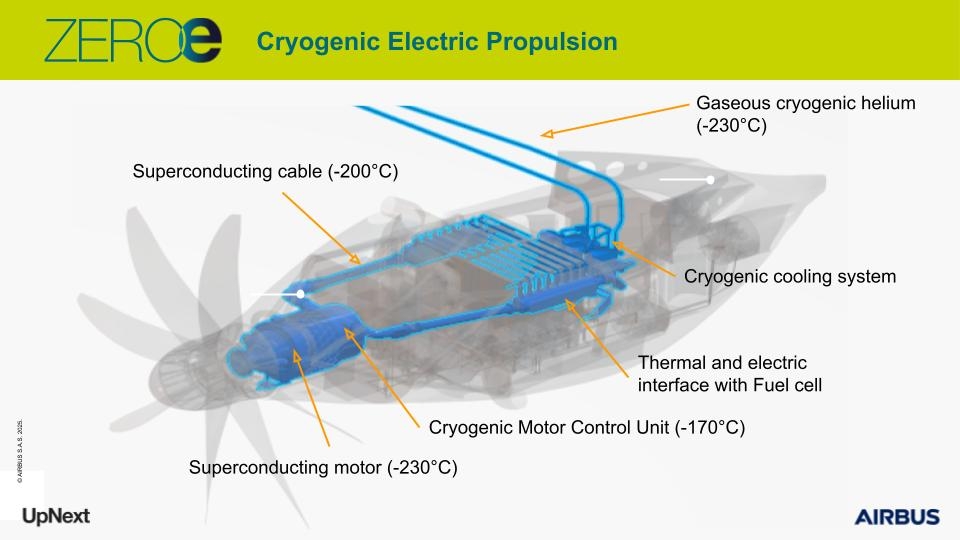 L’integrazione di queste celle a combustibile con motori elettrici per la propulsione rappresenta l’elemento centrale del concetto di aereo ibrido-elettrico ZEROe. Airbus sta sviluppando sistemi avanzati di gestione dell’energia, capaci di coordinare la produzione elettrica dalle celle a combustibile con la trazione elettrica dei motori, ottimizzando così l’efficienza complessiva e garantendo performance di volo sicure e affidabili. Un importante passo in avanti per la validazione di questa tecnologia è l’utilizzo del primo Airbus A380 prodotto, identificato come MSN001, convertito in una piattaforma sperimentale multimodale per test a terra e successivamente per voli dimostrativi.